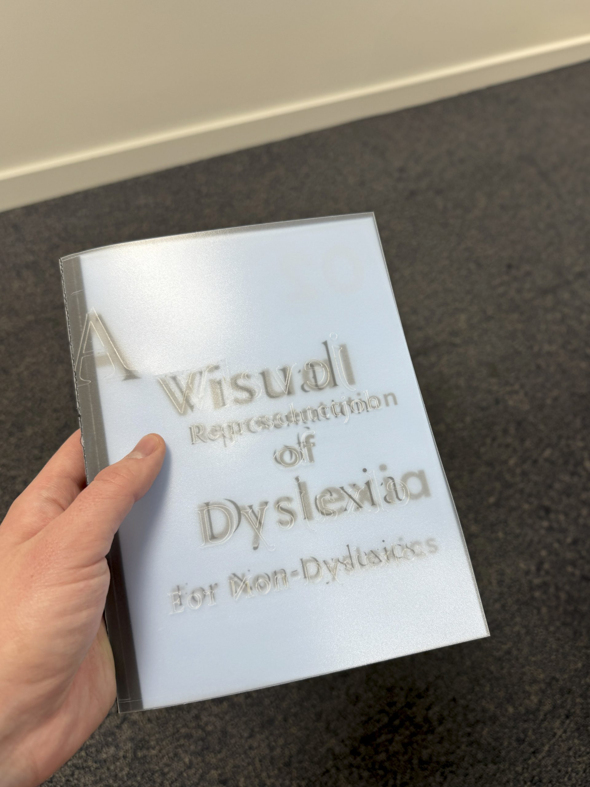 I have recently undertaken my Master’s in Visual Communication, and for this, I used dyslexia as a basis for a research project around how to show what it is like to have dyslexia. This was undertaken by conducting a small online survey to gather descriptions of what text looks like when different people are reading. This has then been interpreted into visual responses to show what dyslexia is like for non-dyslexics.